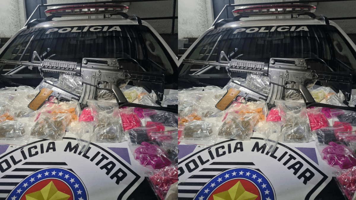 Na noite deste domingo (19), policiais da Força Tática do 1º Batalhão de Polícia Militar do Interior realizaram a apreensão de simulacros de armas e uma quantidade significativa de drogas em um barraco abandonado localizado na região do Banhado, em São José dos Campos.