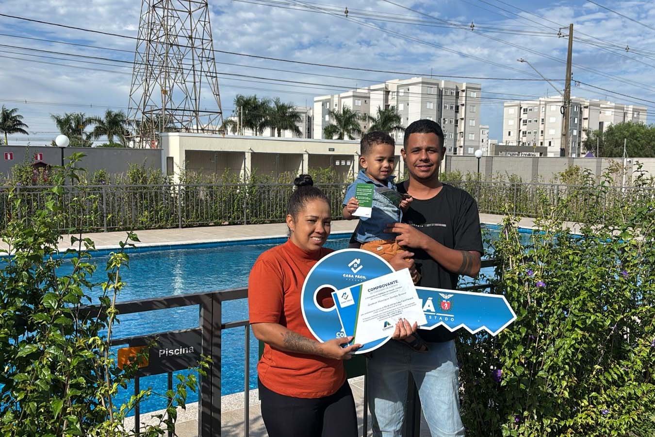 O condomínio oferece segurança com guarita e infraestrutura de lazer, incluindo piscinas, espaços gourmet e parquinho. A conquista da moradia foi celebrada por novos moradores, que destacaram a importância do programa Casa Fácil na viabilização do financiamento e na realização do sonho da casa própria.
